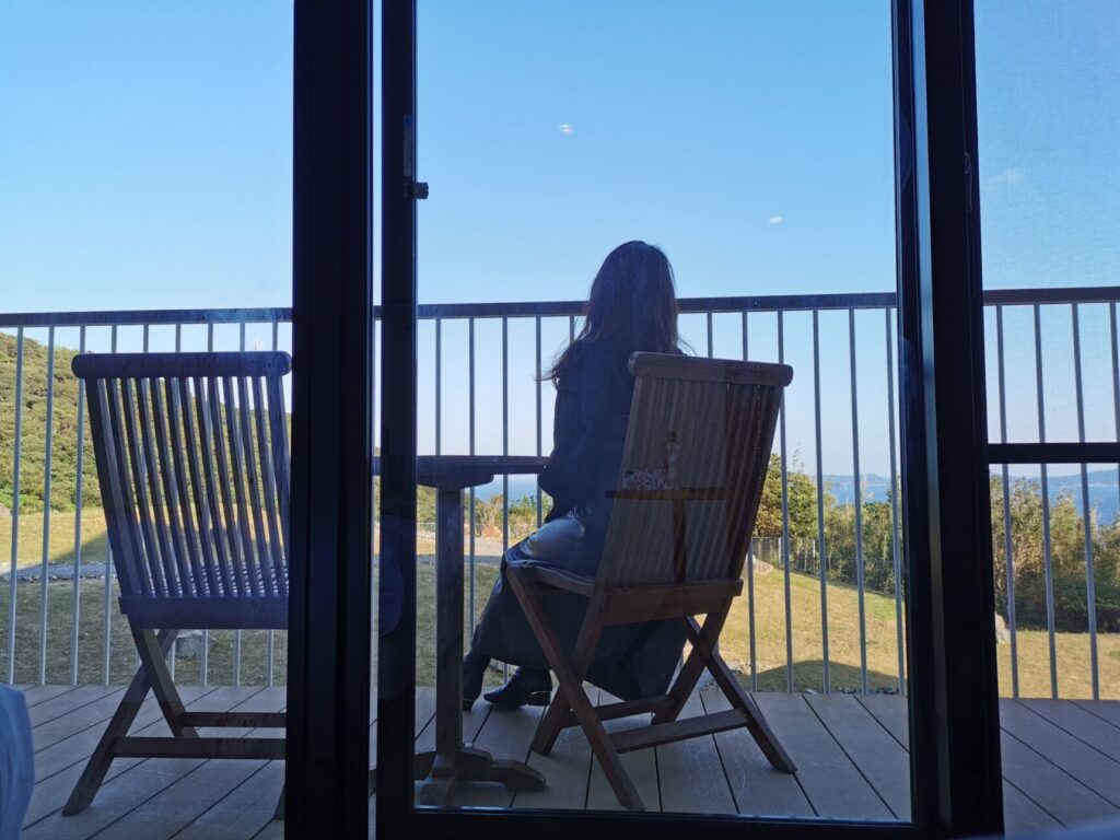 夕方にはテラスからオレンジ色に染まる海が見え、ぼんやりと水平線を眺める時間が何より贅沢でした。