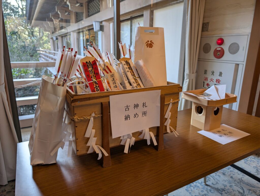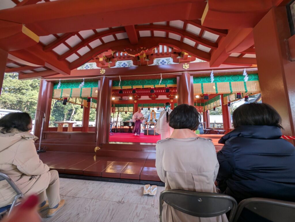 ご祈祷殿は外にむき出し。風通しが良さすぎてとにかく寒い!!厚着が本当におすすめ!