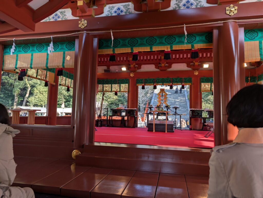 担当の人から案内があり30人とかそれぐらいの人数が一気に動き、ご祈祷殿に案内されます。