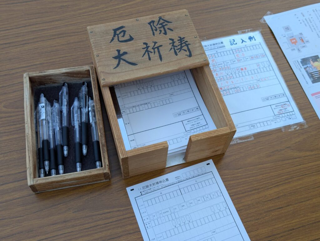 受付の順番が来たら、記入した用紙を受付の人に渡します。その際に、ご祈祷料(初穂料)1万円も払います。